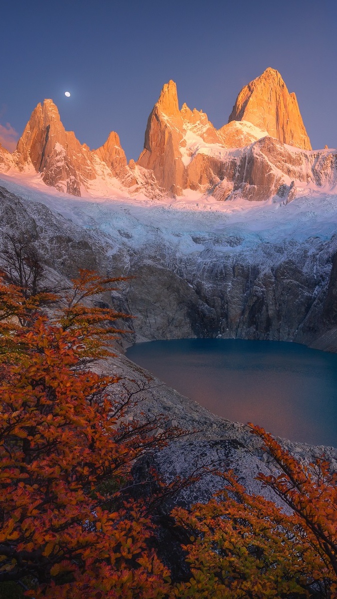 Edytor tapety: Widok na rozświetlony szczyt Fitz Roy