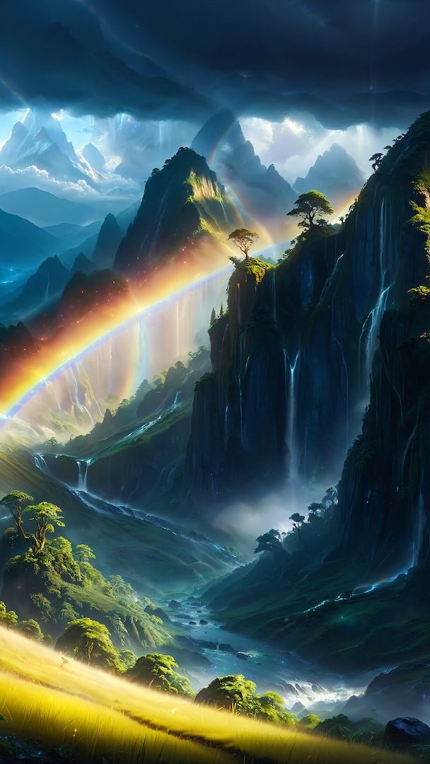Edytor tapety: Tęcza pomiędzy skalistymi górami