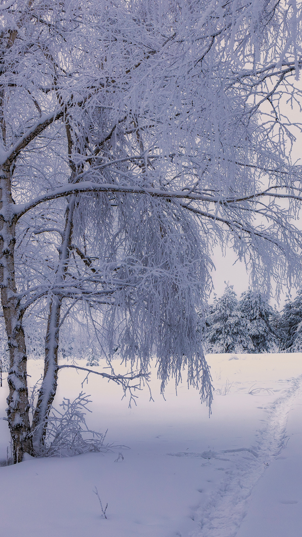 Edytor tapety: Ośnieżone gałęzie nad ścieżką