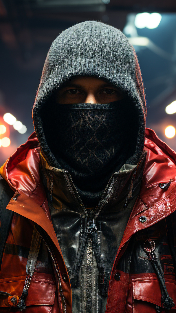 Edytor tapety: Zamaskowany mężczyzna w kurtce