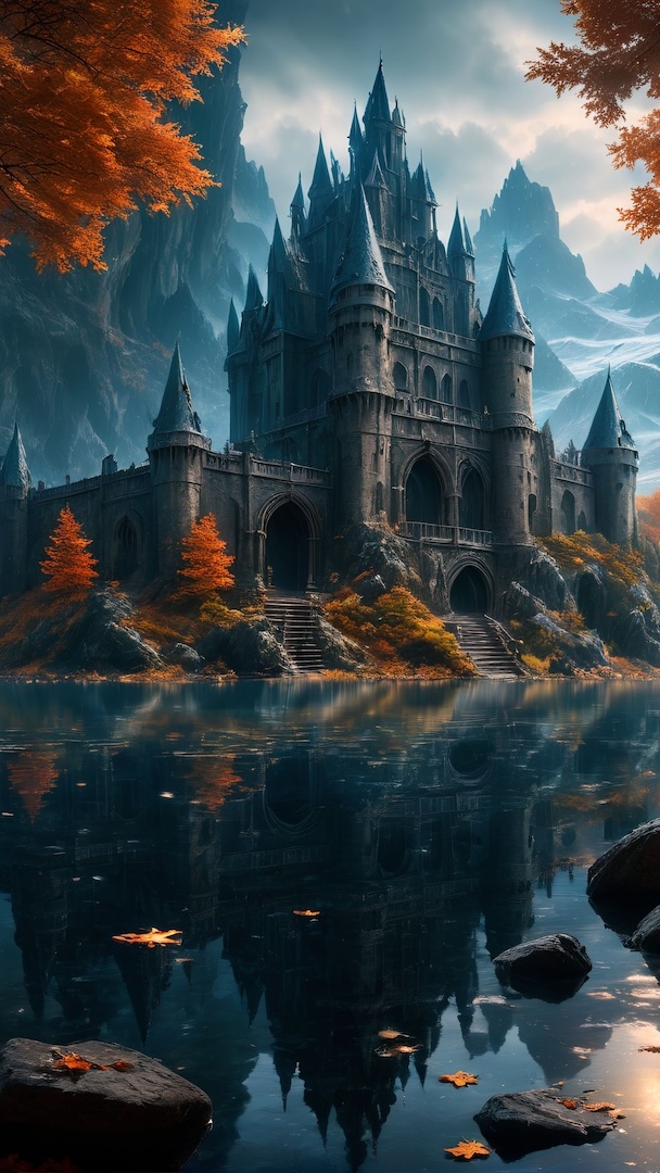 Edytor tapety: Zamek z wieżyczkami nad rzeką