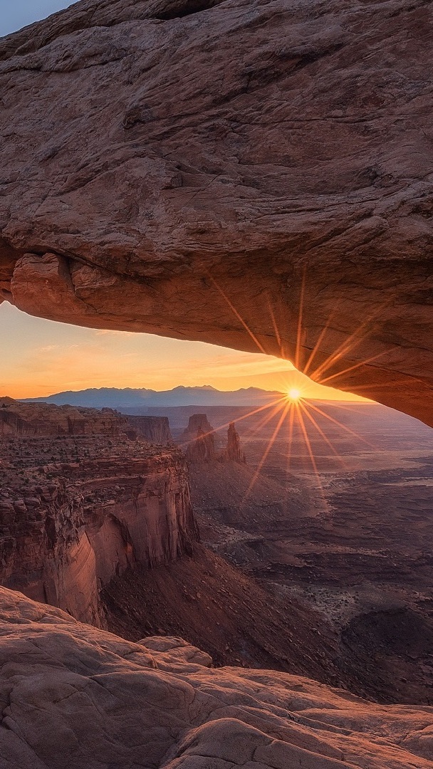 Edytor tapety: Promienie słońca pod łukiem skalnym