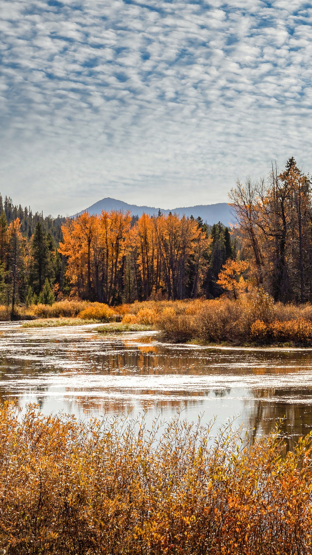 Edytor tapety: Pożółkłe szuwary nad jeziorem