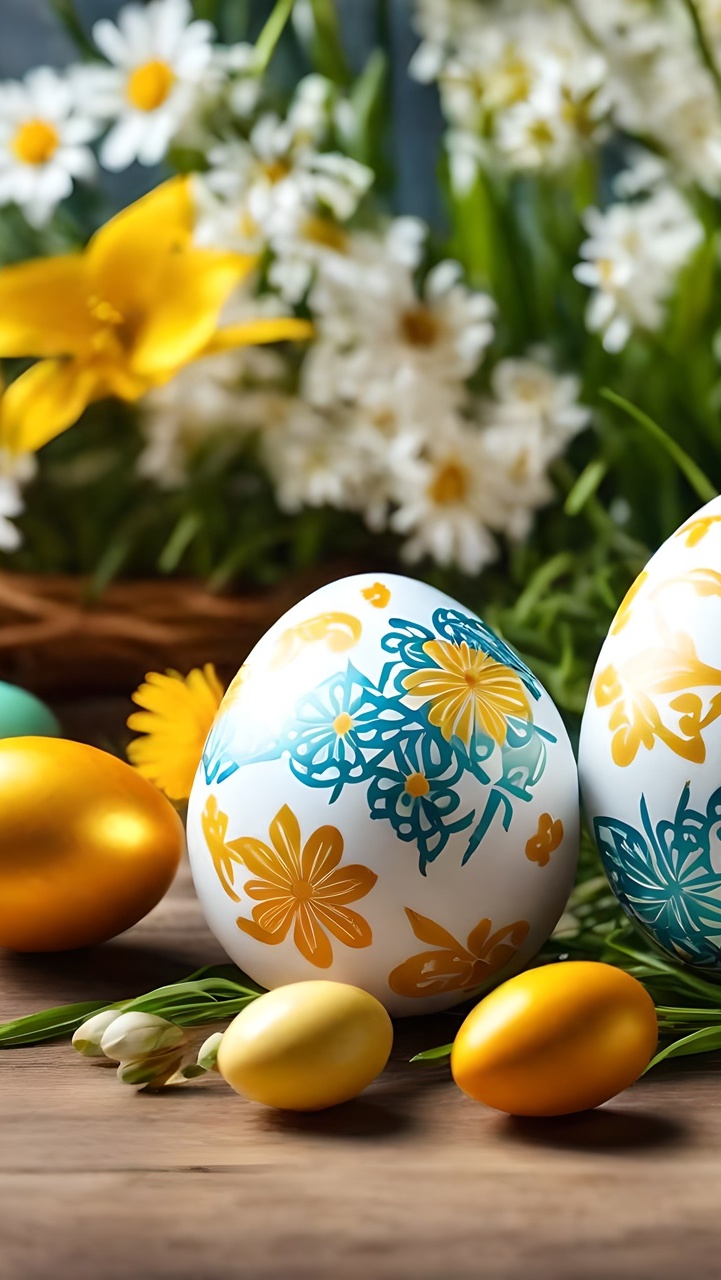 Edytor tapety: Wielkanocne pisanki i kolorowe kwiaty