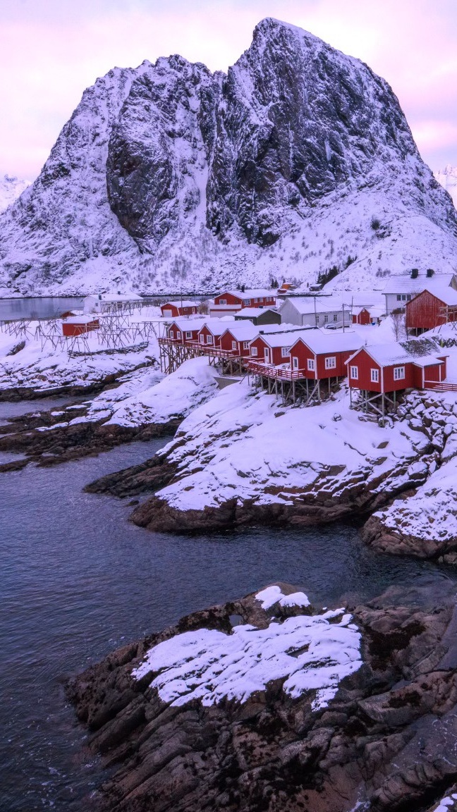 Edytor tapety: Czerwone domki na Lofotach norweskich