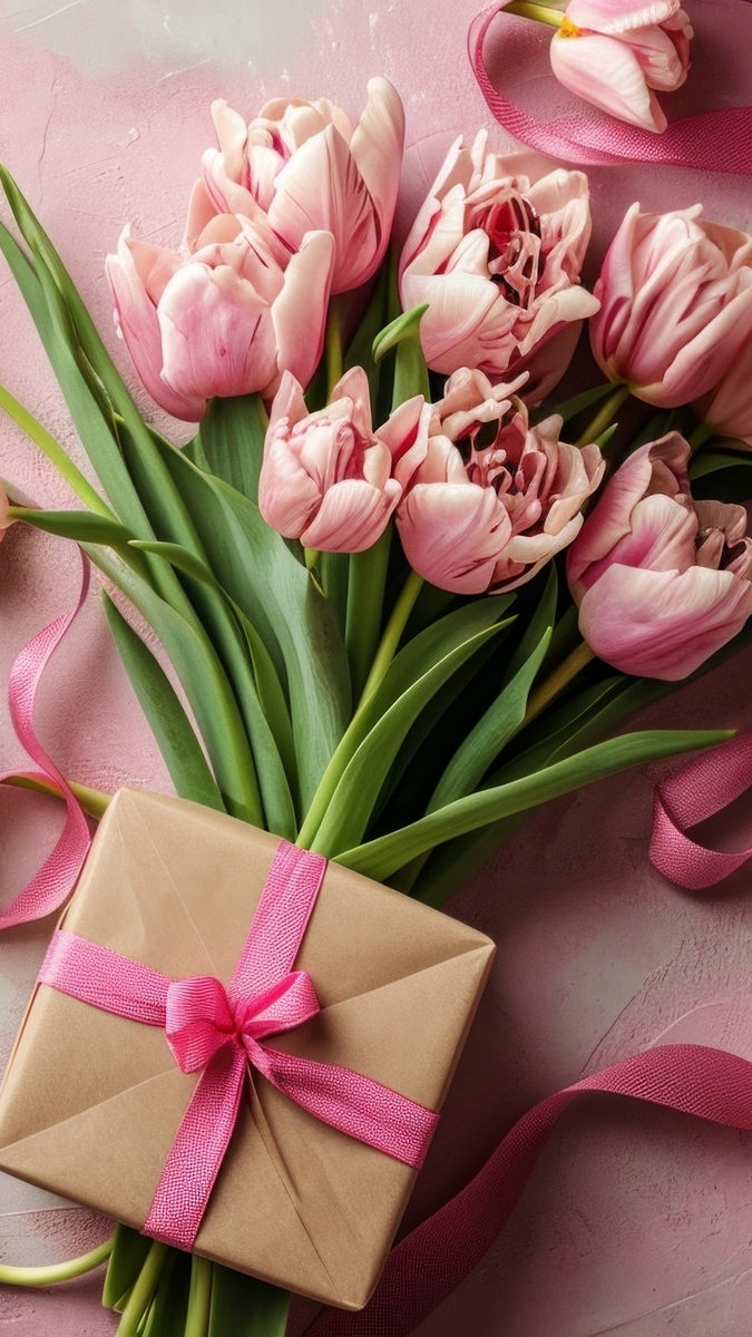 Edytor tapety: Prezent na bukiecie tulipanów