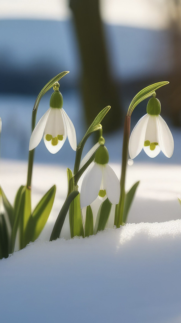 Edytor tapety: Rozświetlone przebiśniegi w śniegu