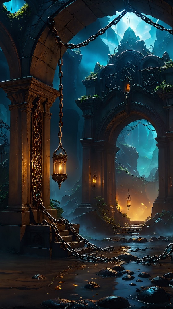 Edytor tapety: Wiszące latarnie i schody w świątyni