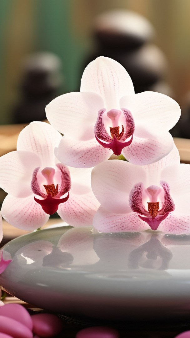 Edytor tapety: Jasnoróżowe storczyki na kamieniu