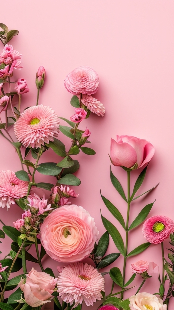 Edytor tapety: Kwiaty na różowym tle