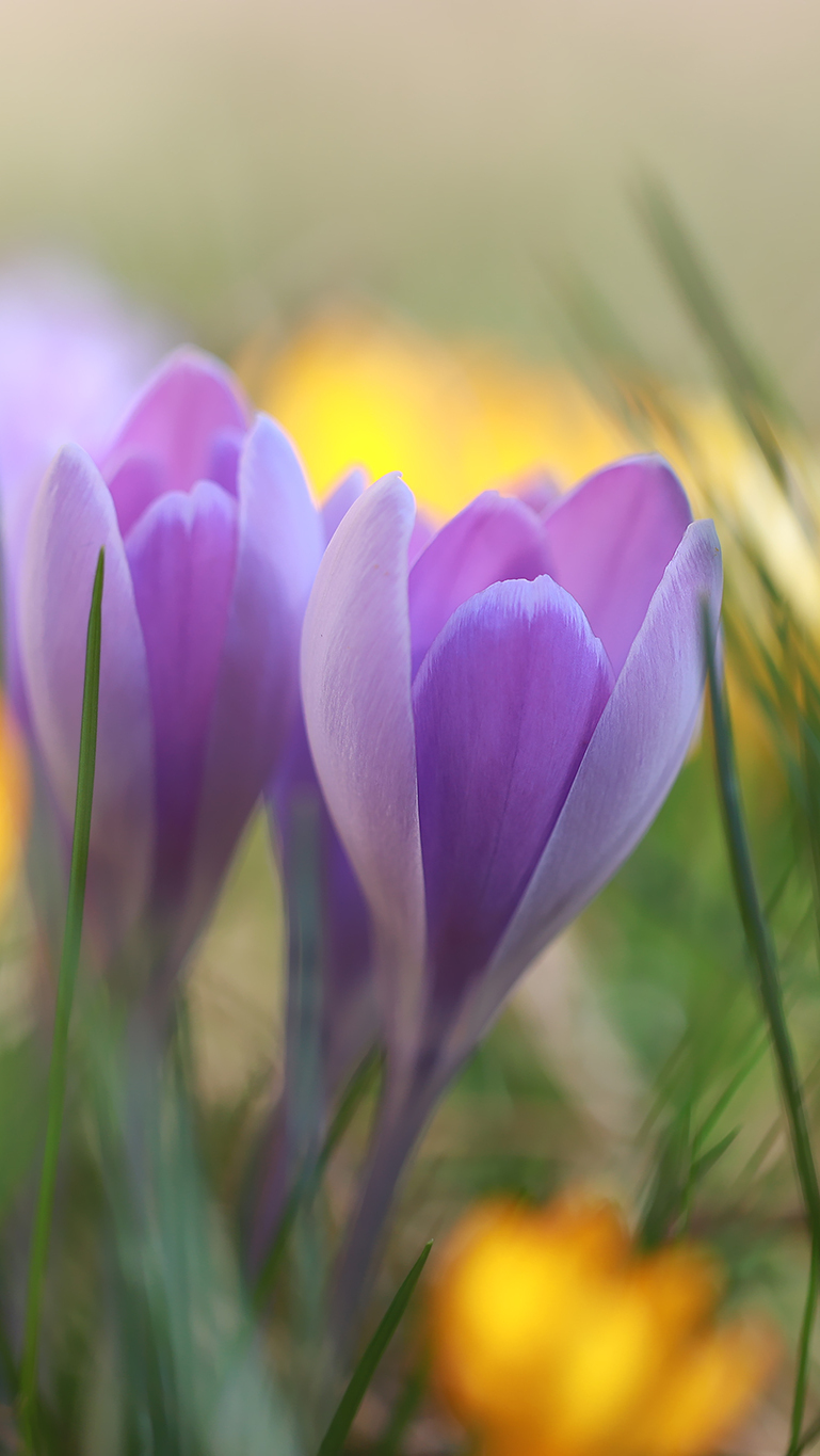 Edytor tapety: Fioletowe krokusy na rozmytym tle