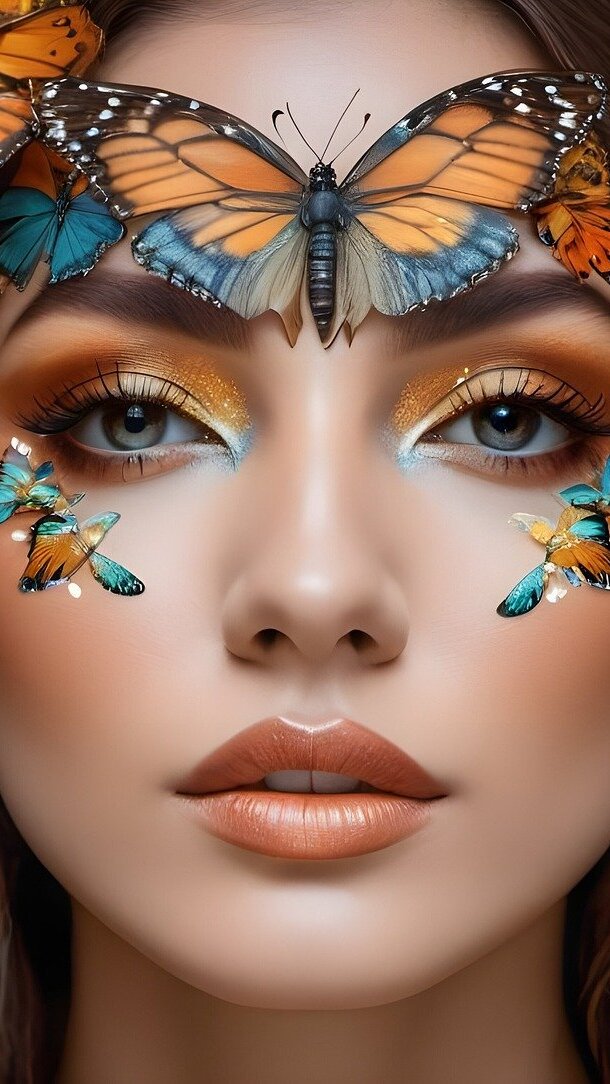 Edytor tapety: Motyle na twarzy kobiety
