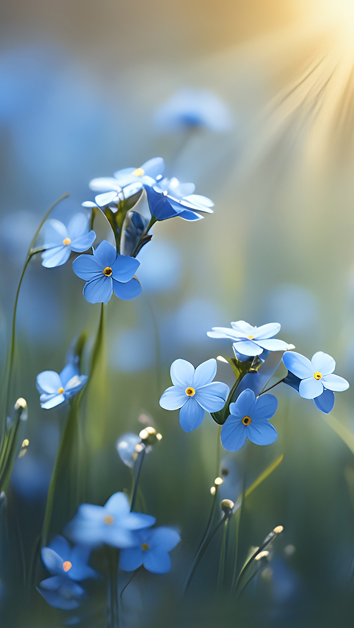 Edytor tapety: Rozświetlone niebieskie niezapominajki