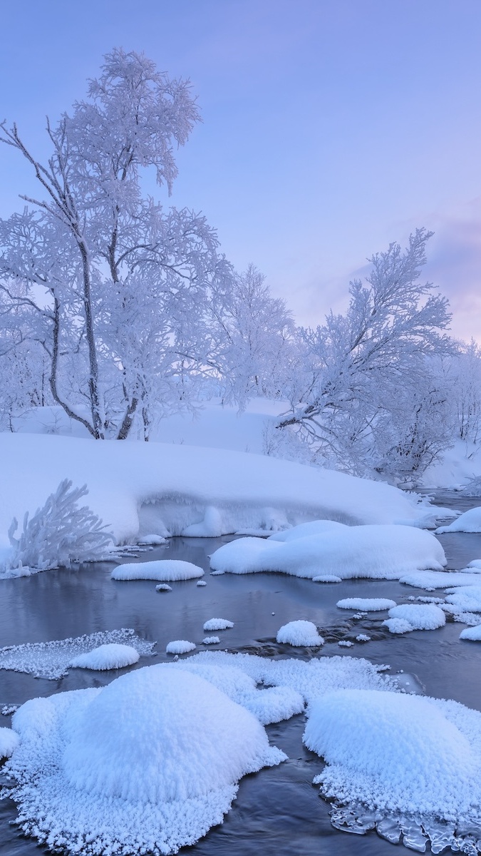 Edytor tapety: Drzewa w śniegu nad rzeką