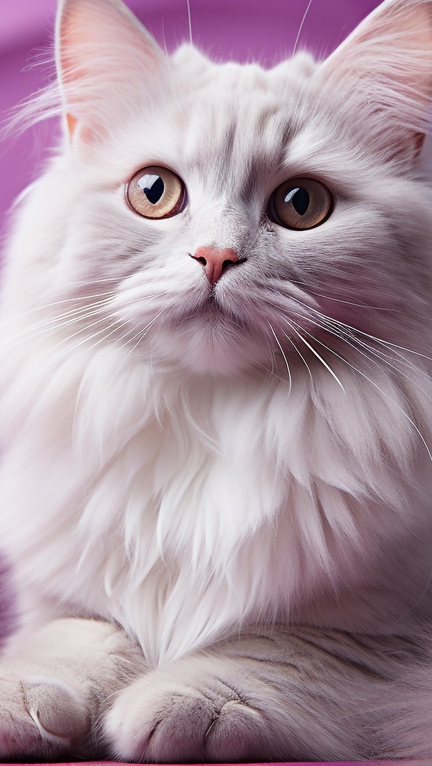 Edytor tapety: Biały puszysty kot w zbliżeniu
