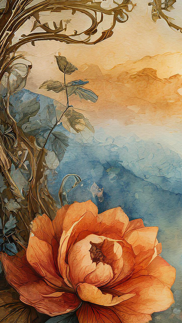 Edytor tapety: Pomarańczowy kwiat i gałązki