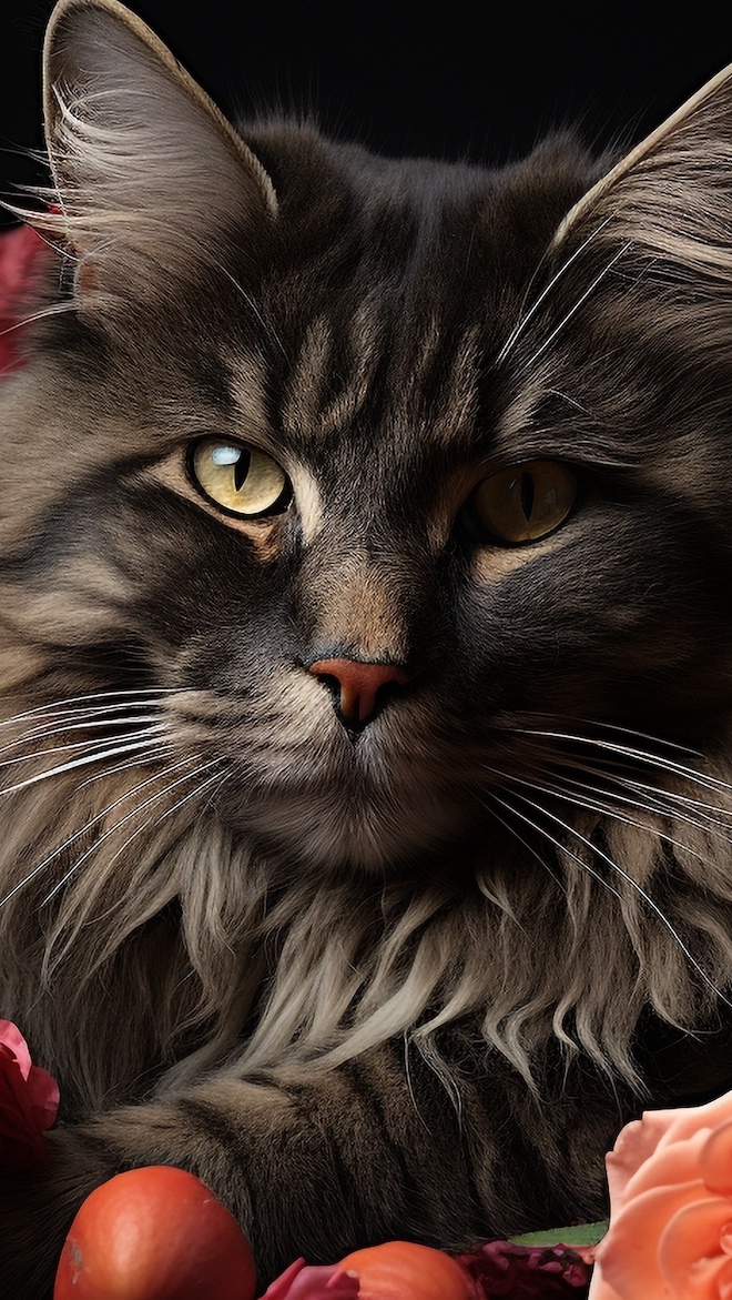 Edytor tapety: Puszysty ciemny kot