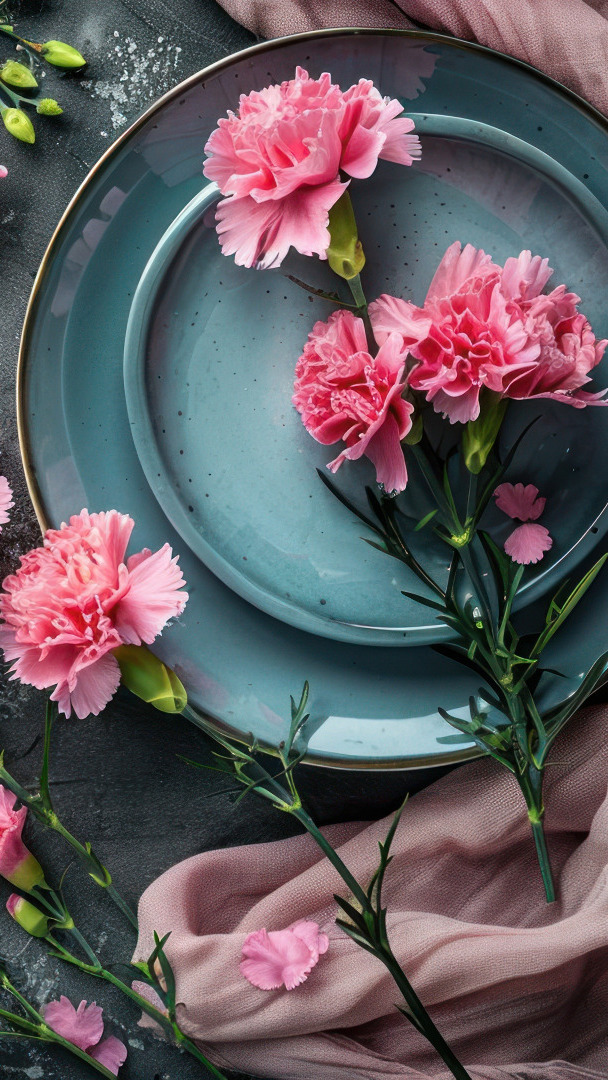 Edytor tapety: Różowe goździki na talerzach