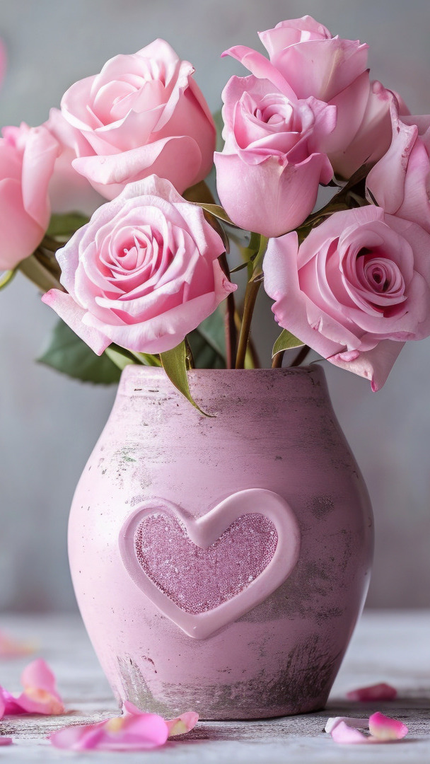 Edytor tapety: Bukiet róż w wazonie z sercem