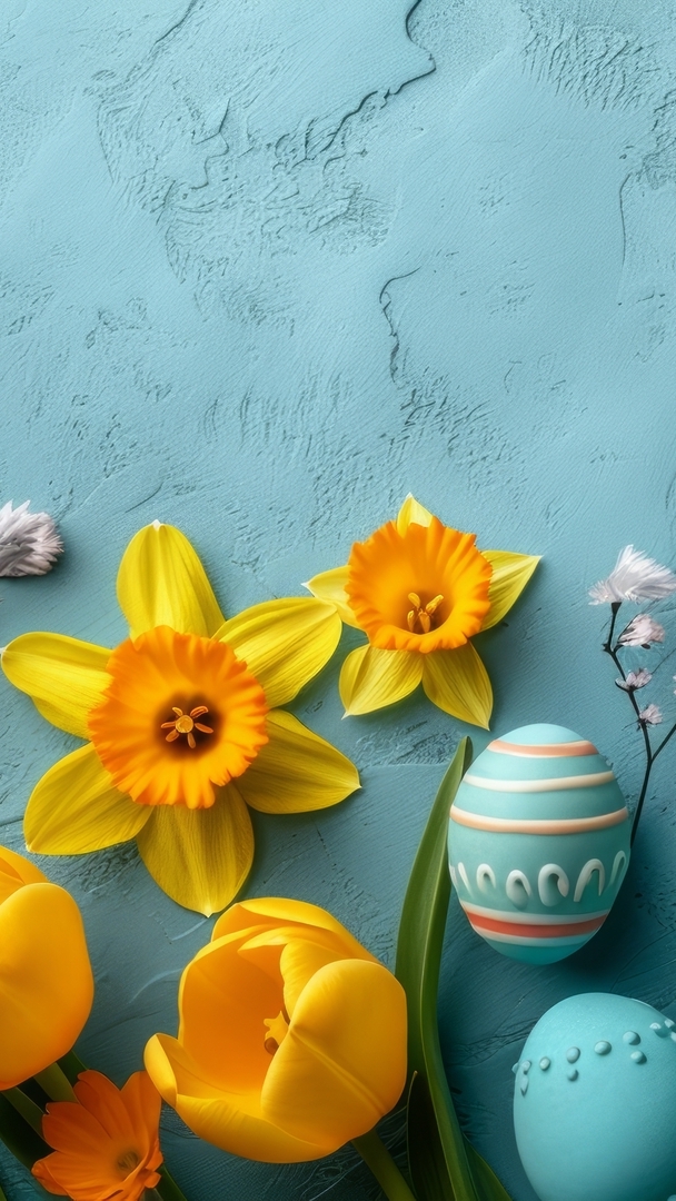 Edytor tapety: Niebieskie pisanki we wzorki wśród kwiatów