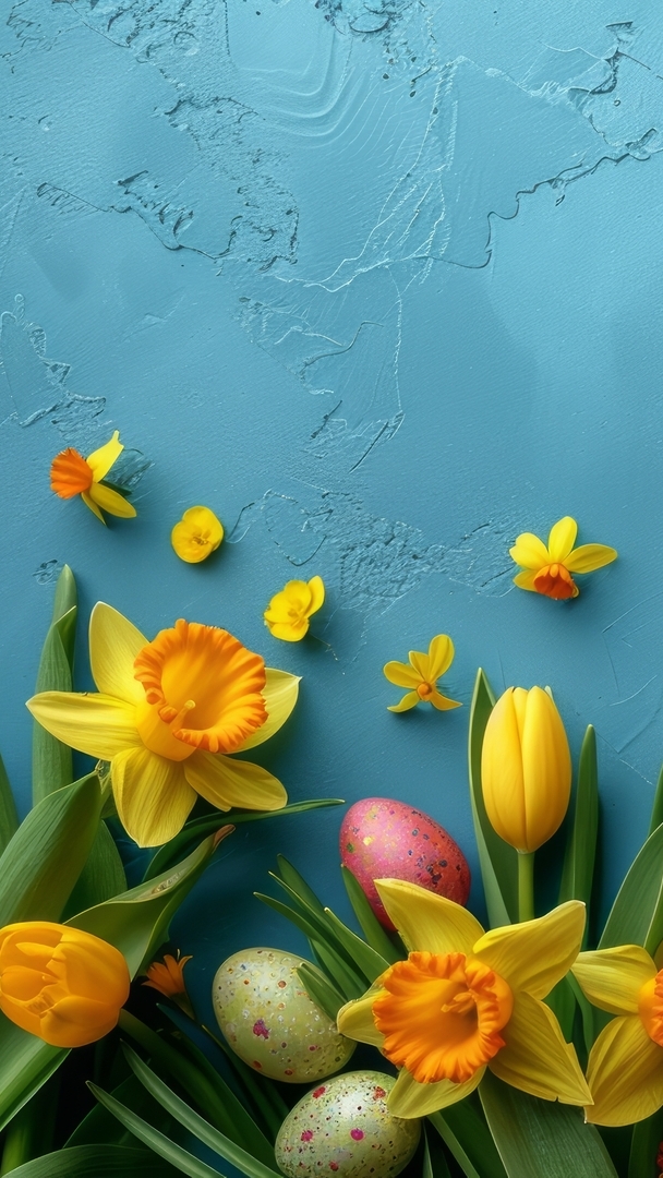 Edytor tapety: Pisanki wśród żonkili i tulipanów