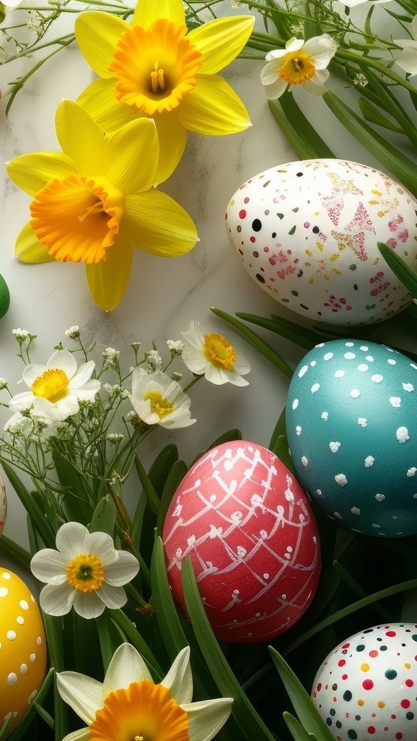 Edytor tapety: Pisanki wśród wiosennych kwiatów