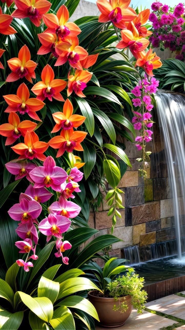 Edytor tapety: Kolorowe kwiaty zwisające z murku