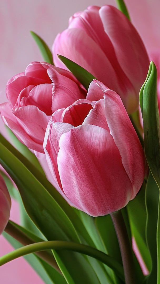 Edytor tapety: Różowe tulipany w zbliżeniu
