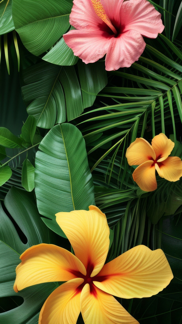 Edytor tapety: Kwiaty na zielonych liściach