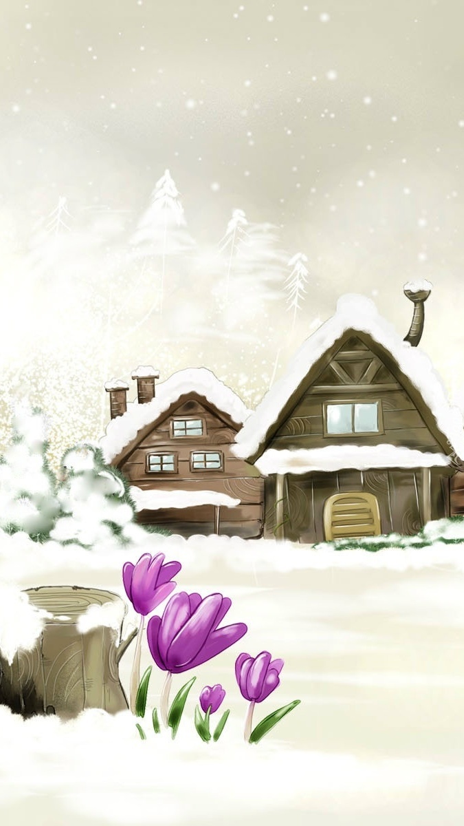 Edytor tapety: Zakwitły krokusy zimową porą