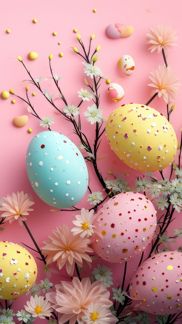 Edytor tapety: Kolorowe pisanki wśród gałązek