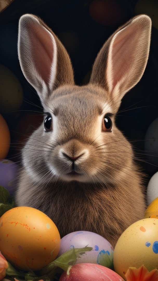 Edytor tapety: Królik i kolorowe pisanki