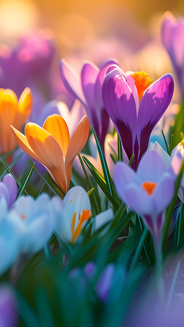 Edytor tapety: Kolorowe krokusy w rozkwicie