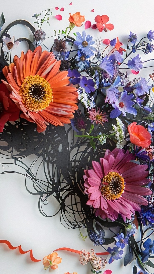 Edytor tapety: Gerbery i kolorowe kwiaty