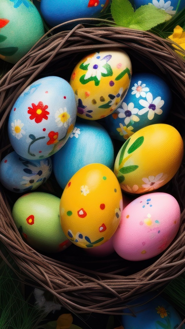 Edytor tapety: Kolorowe pisanki w gniazdku