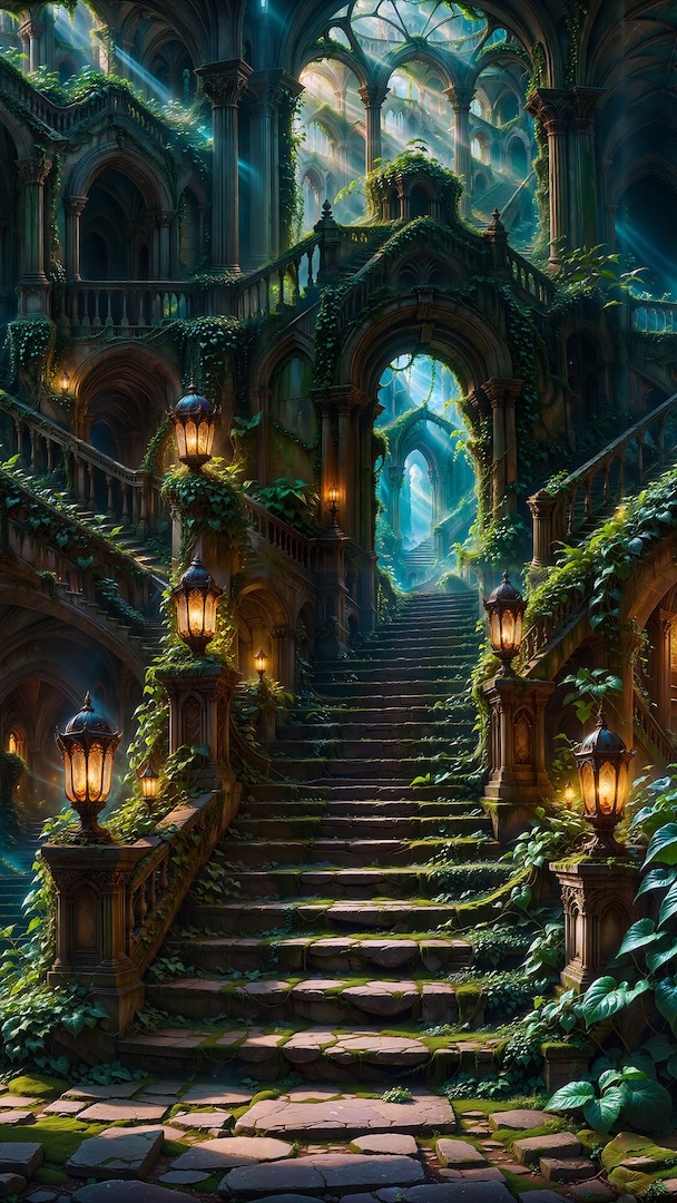 Edytor tapety: Kolumny i oświetlone latarniami schody