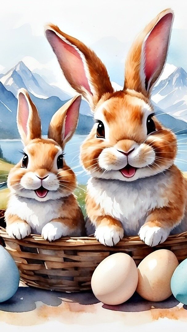 Edytor tapety: Dwa zajączki w koszyku