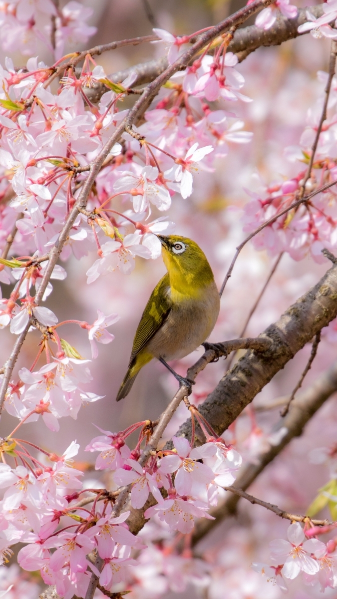 Edytor tapety: Szlarnik japoński na ukwieconej gałęzi