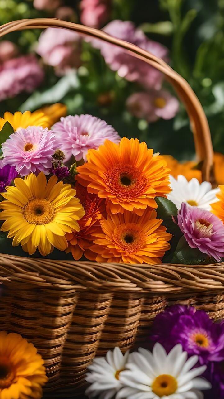 Edytor tapety: Kolorowe kwiaty w koszyku
