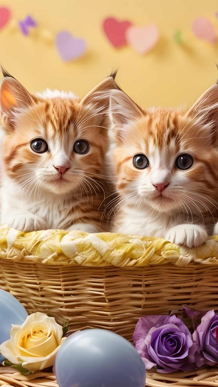 Edytor tapety: Dwa rudawe kotki w koszyku