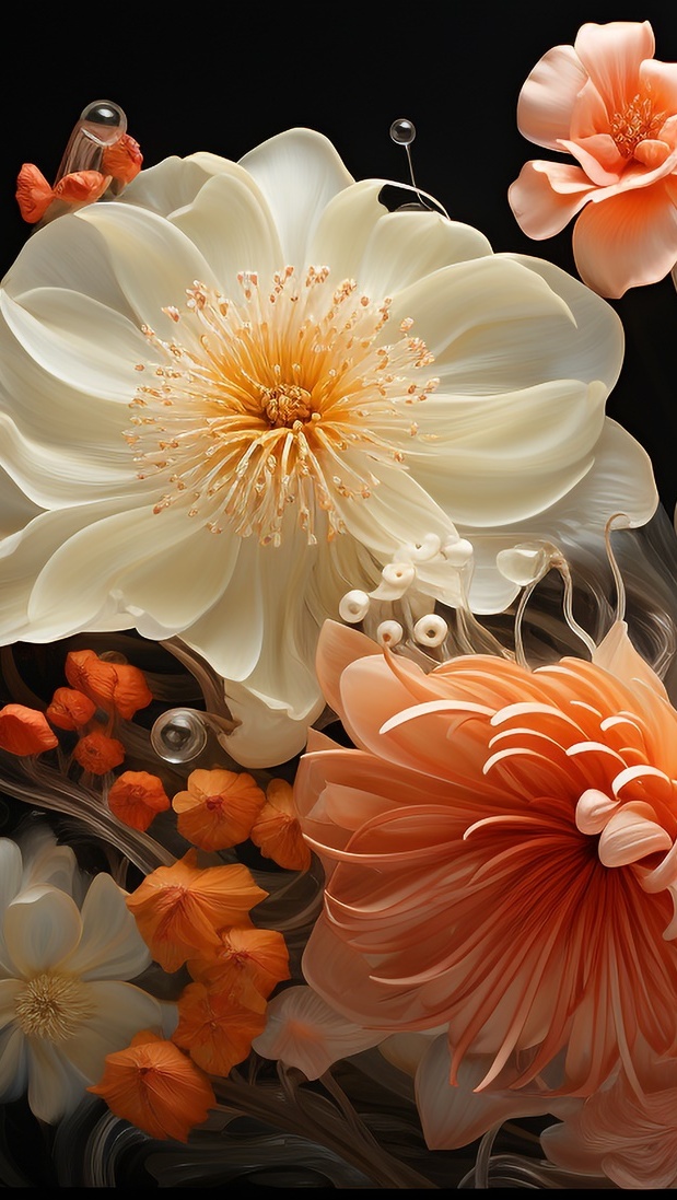 Edytor tapety: Rozwinięte kwiaty na czarnym tle