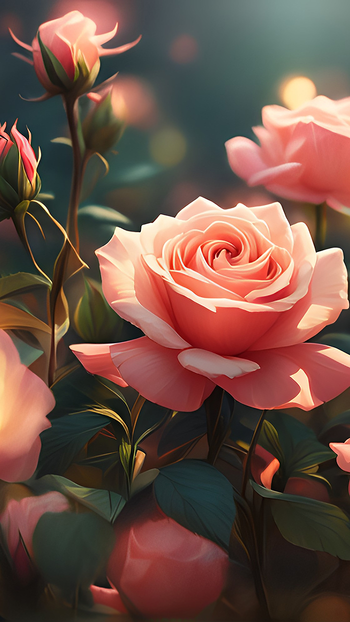 Edytor tapety: Rozświetlone słonecznym blaskiem różowe róże