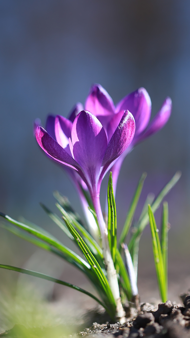 Edytor tapety: Fioletowe krokusy w blasku słońca