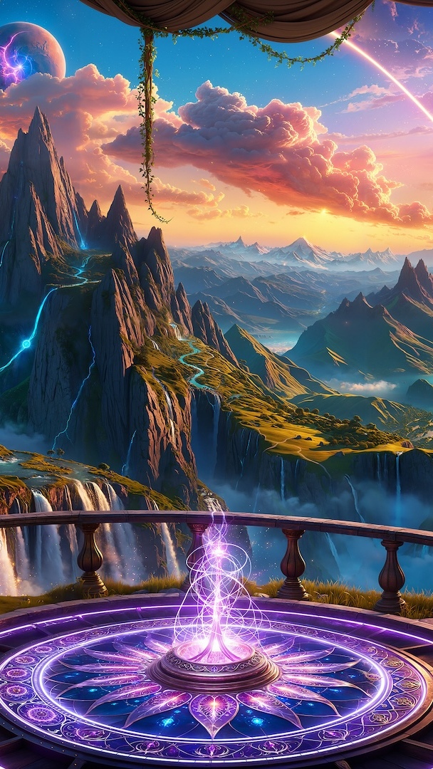 Edytor tapety: Krąg w jaskini na tle gór