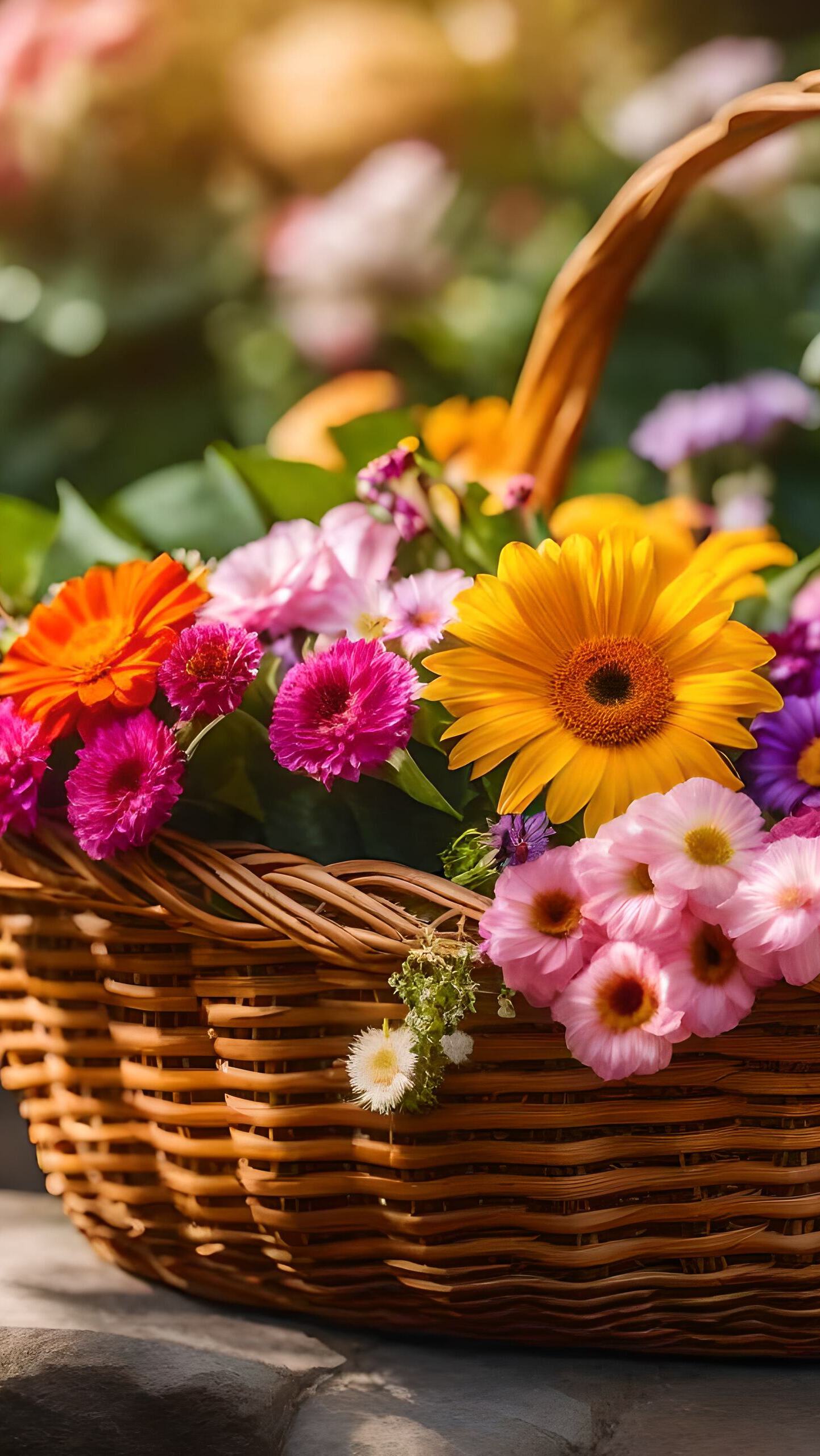 Edytor tapety: Różne kolorowe kwiaty w koszyku