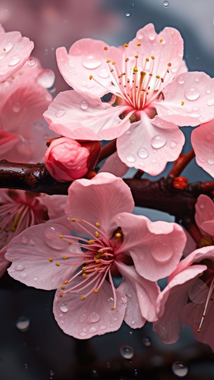 Edytor tapety: Kropelki wody na różowych kwiatkach