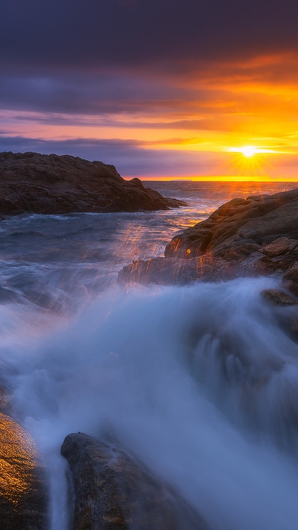 Edytor tapety: Fale na rozświetlonych słońcem skałach