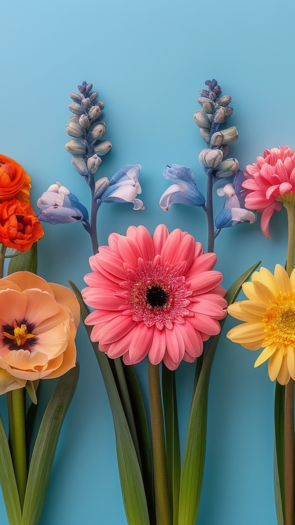 Edytor tapety: Kolorowe kwiaty na niebieskim tle