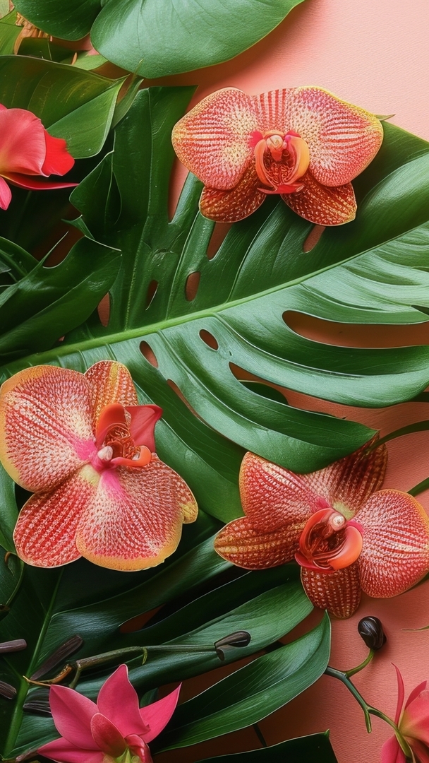 Edytor tapety: Nakrapiane storczyki na zielonych liściach