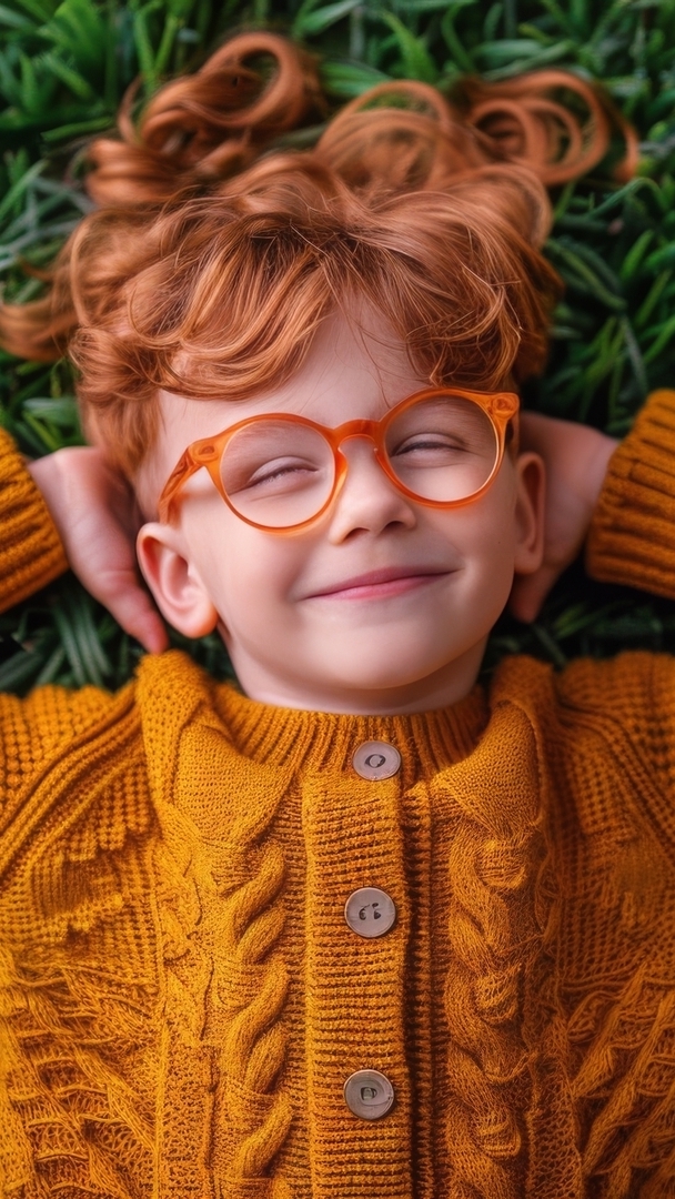 Edytor tapety: Rudowłosy chłopiec w okularach
